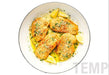 Description: House Garlic Sauce Marinated Grilled Chicken Breast w/ Mashed Potatoes, Grilled Asparagus, & Lemon Wheel